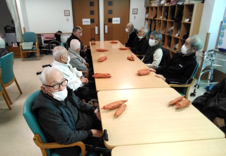今回はみんなでサツマイモとあずきの団子を作りました。 皆さま昔の話をしな……