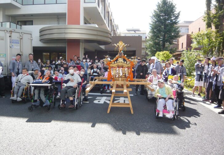 先日、町内会のお祭が行われた際に、お神輿が当施設まで来てくれました(*´▽`*……
