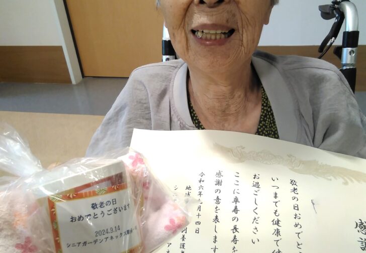敬老の日に施設で敬老会を行いました。当施設での最高齢は101歳のご利用者様……