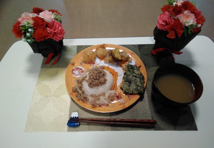 さあ、続いて昼食に参りましょう! 入所の皆さんも同じく、昼食は、残念なが……