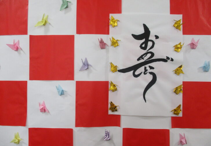 式典前には、歳祝いの方にちゃんちゃんこを着て頂き、記念撮影しました(^……