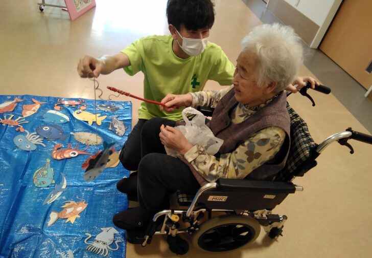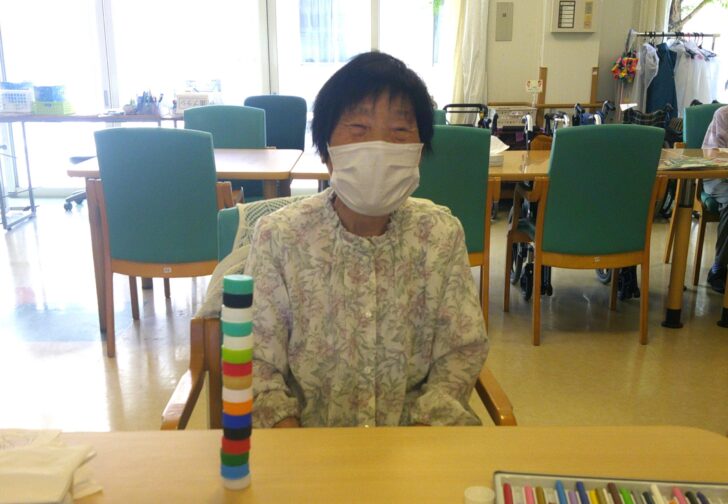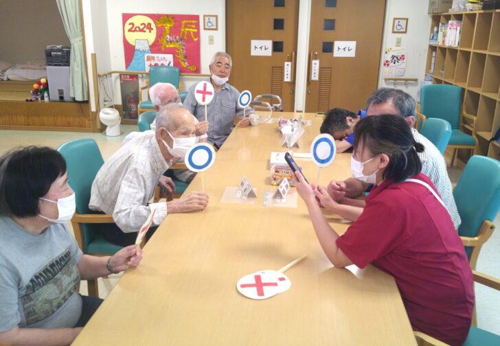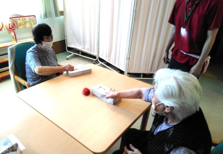 今日は珍しく、「グループレク」の日でした♬ テーブルごとに違うレクリエー……