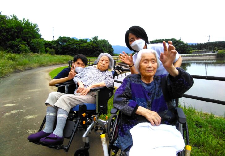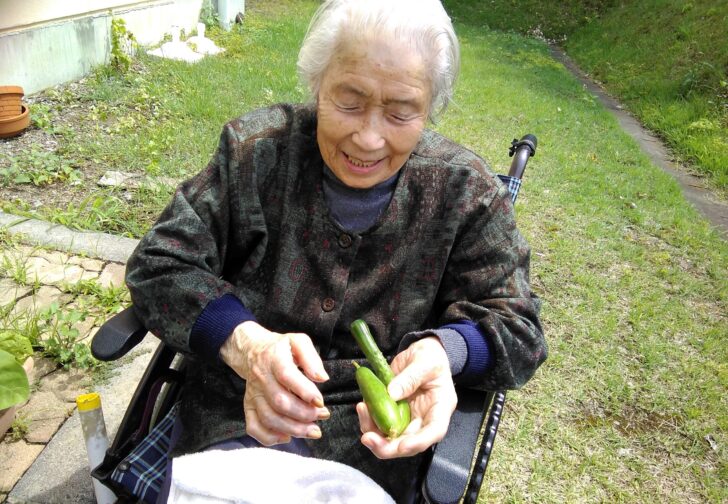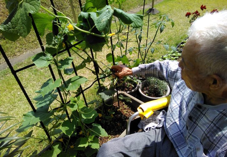 天気の良かったある日、デイサービスやショートステイで育てた花や野菜を見にお散歩……