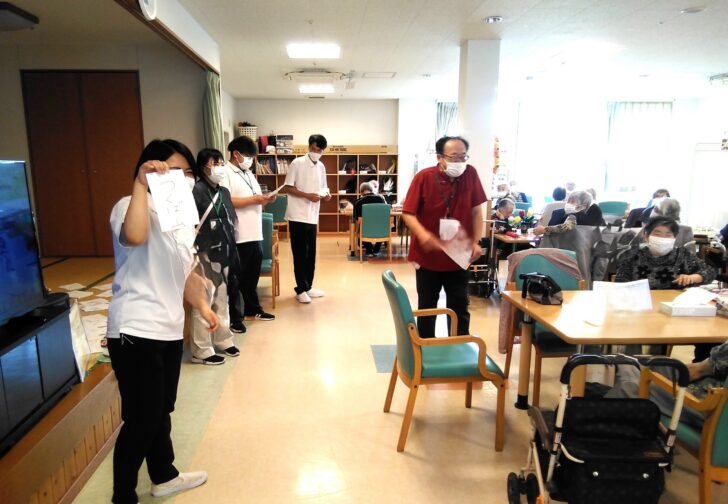 先日のレクリエーションの予定は『旗上げゲーム』でした。 が、いざレクリエ……