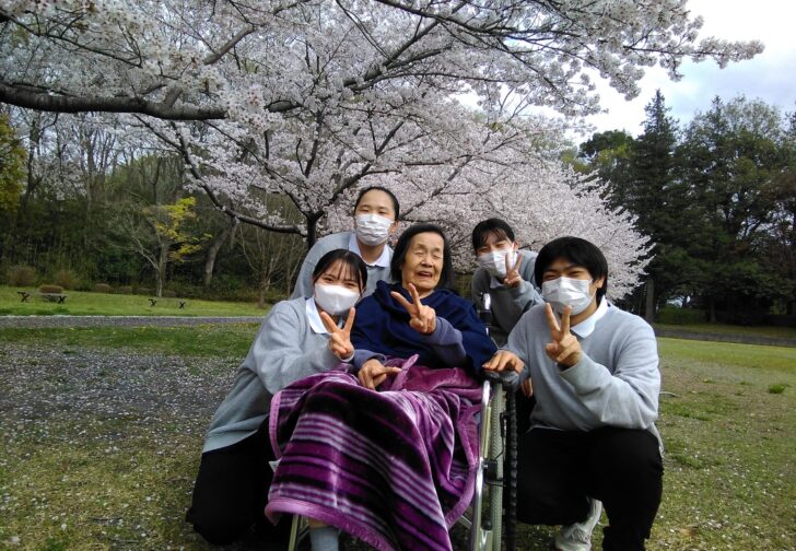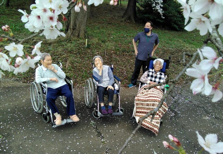 急に桜が満開になり、皆さんに声かけると「行く‼」と元気に返事して……