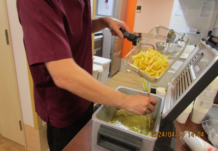 今月はフライドポテトです。 揚げたてをみんなで食べました。 食事が……