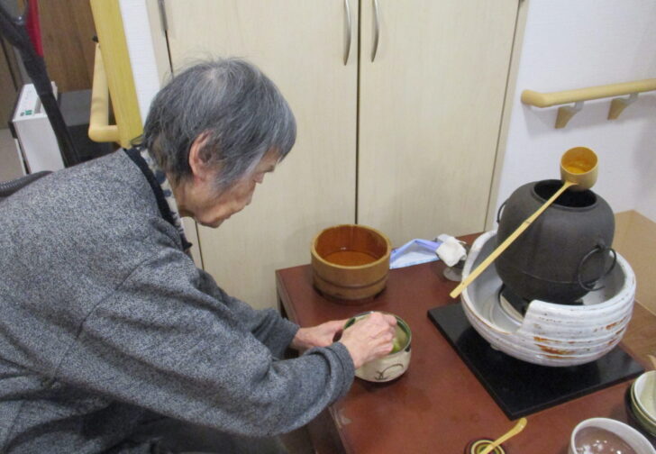施設で雛祭りを開催しました。 職員と一緒にお茶をたて、昼食は行事食。 ……