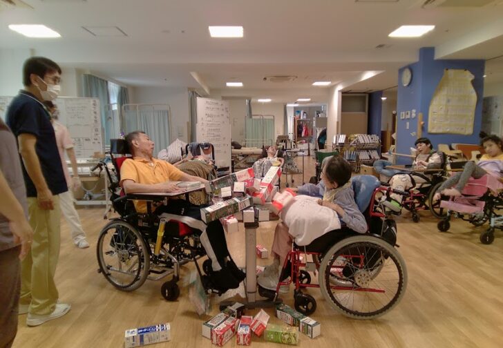 本日レクリエーションで牛乳パックタワーを行いました。 まずは牛乳パックで……