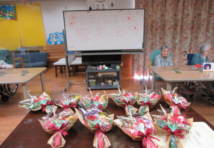 シニアガーデンにて多くの利用者様のお祝いしました。施設からのお祝いや、ご家族様……