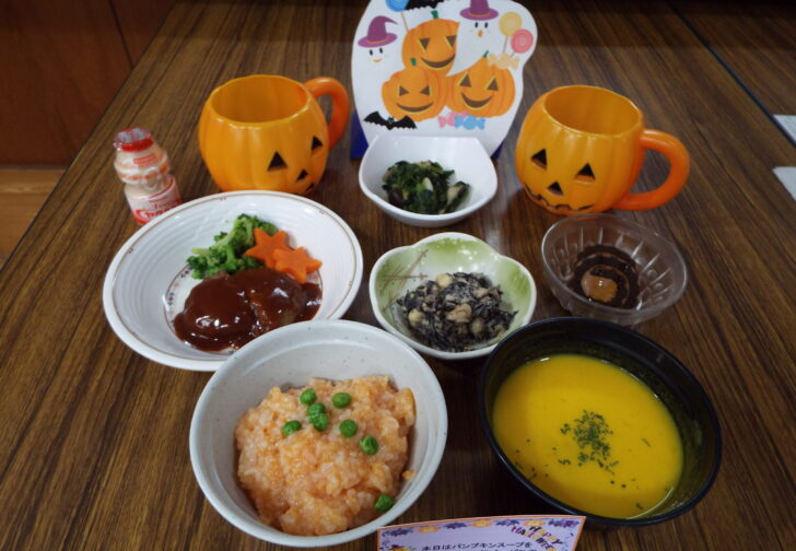 10月31日 ハロウィン献立利用者様には馴染みのないハロウィンでしたが、昼食は……
