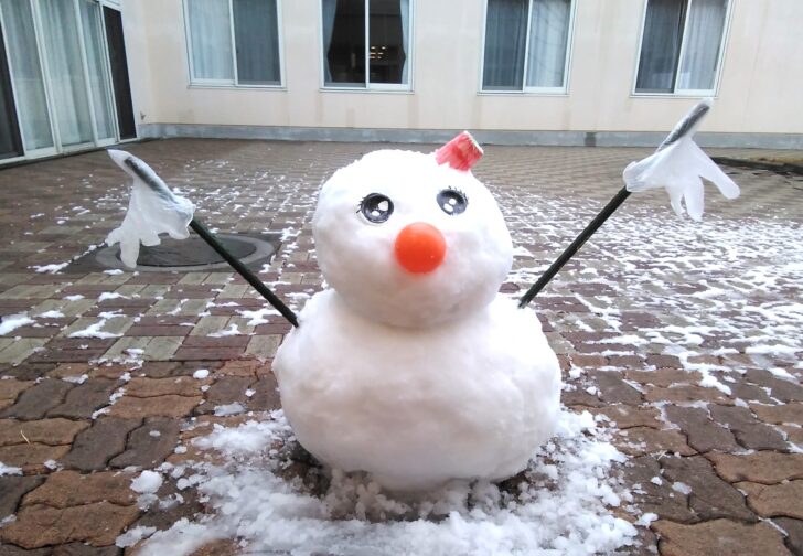 皆様をお出迎えしてくれた雪だるまを見て、「初めて見た‼」「誰が作……