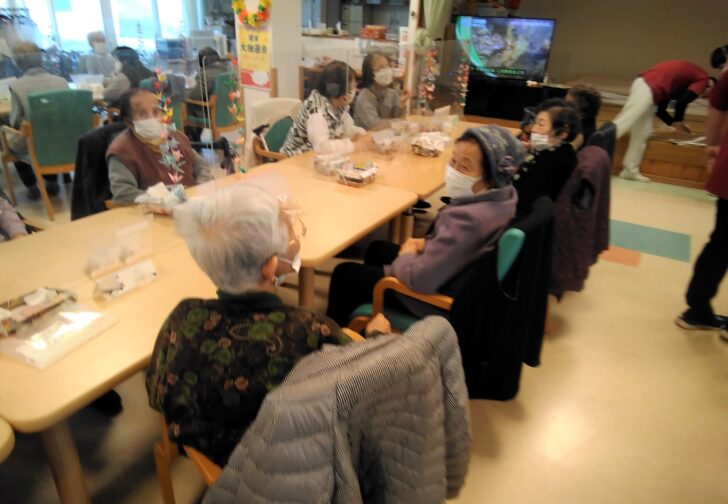 今日は忘年会をデイサービスで行いました! 第一部では歳末大抽選会をやって……