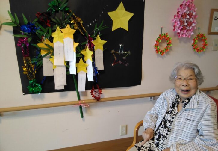 昨日は七夕でしたね。 利用者様にお願い事を短冊に書いていただき、フロアへ……