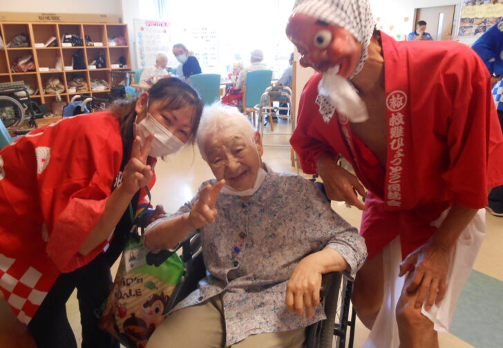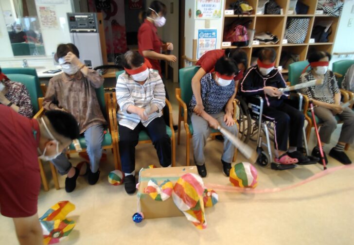 先日、ショートステイでは納涼祭を行いました。 お菓子のつかみ取りや、鈴く……