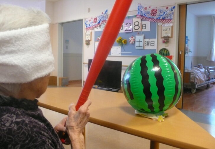 先月、入所ユニットでは、各ユニット毎にすいか割りやかき氷を楽しまれました。すい……