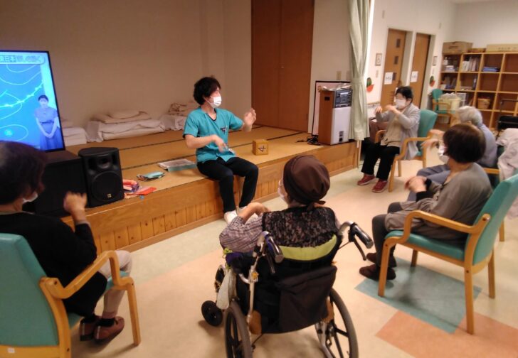 アネックスデイサービスでは、週3回理学療法士が訪問し、小集団で手足を動かす体操……