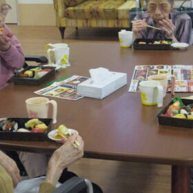 羊かんは職員が作り、利用者様が生クリームをトッピングして食べました。