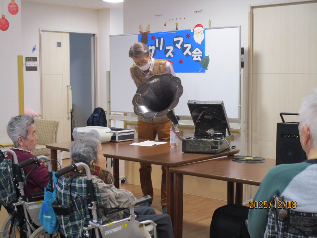 前回は全体でハープ演奏でしたが、今回は各ユニットで蓄音機を使って音楽をききました。