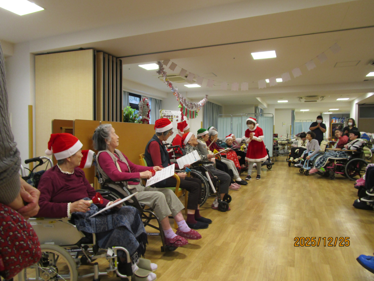 本日、となりの障害者支援施設で御入所者様がハンドベルと歌の発表会を行いました。