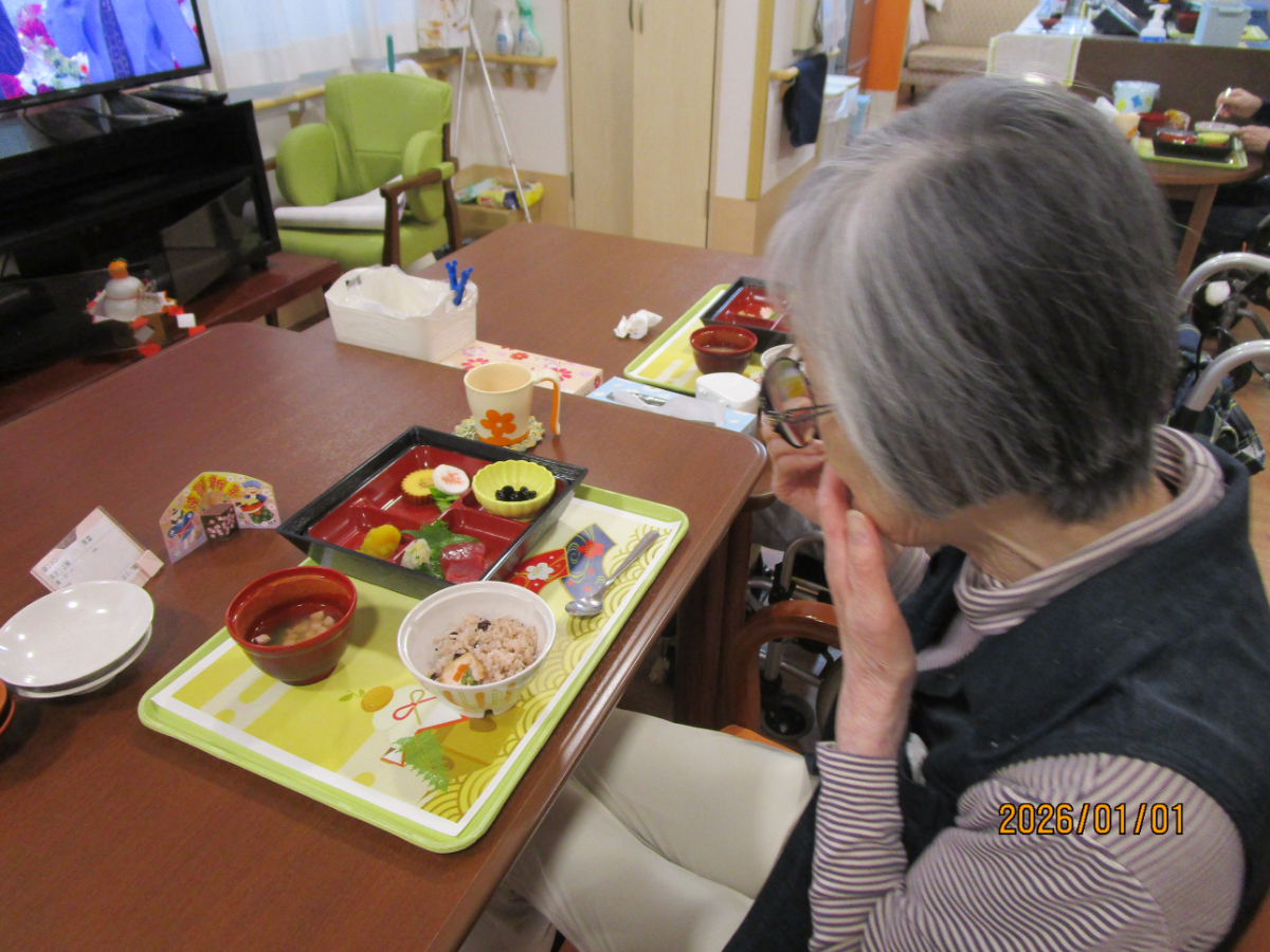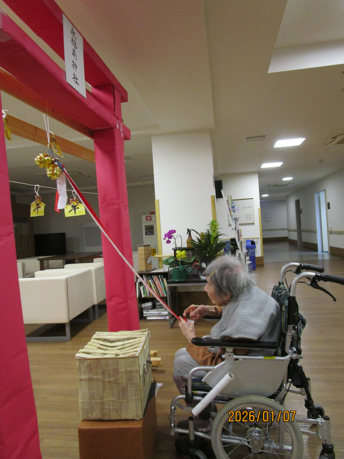 玄関には職員で作成した鳥居を飾り、みんな初詣を楽しんでおりました。