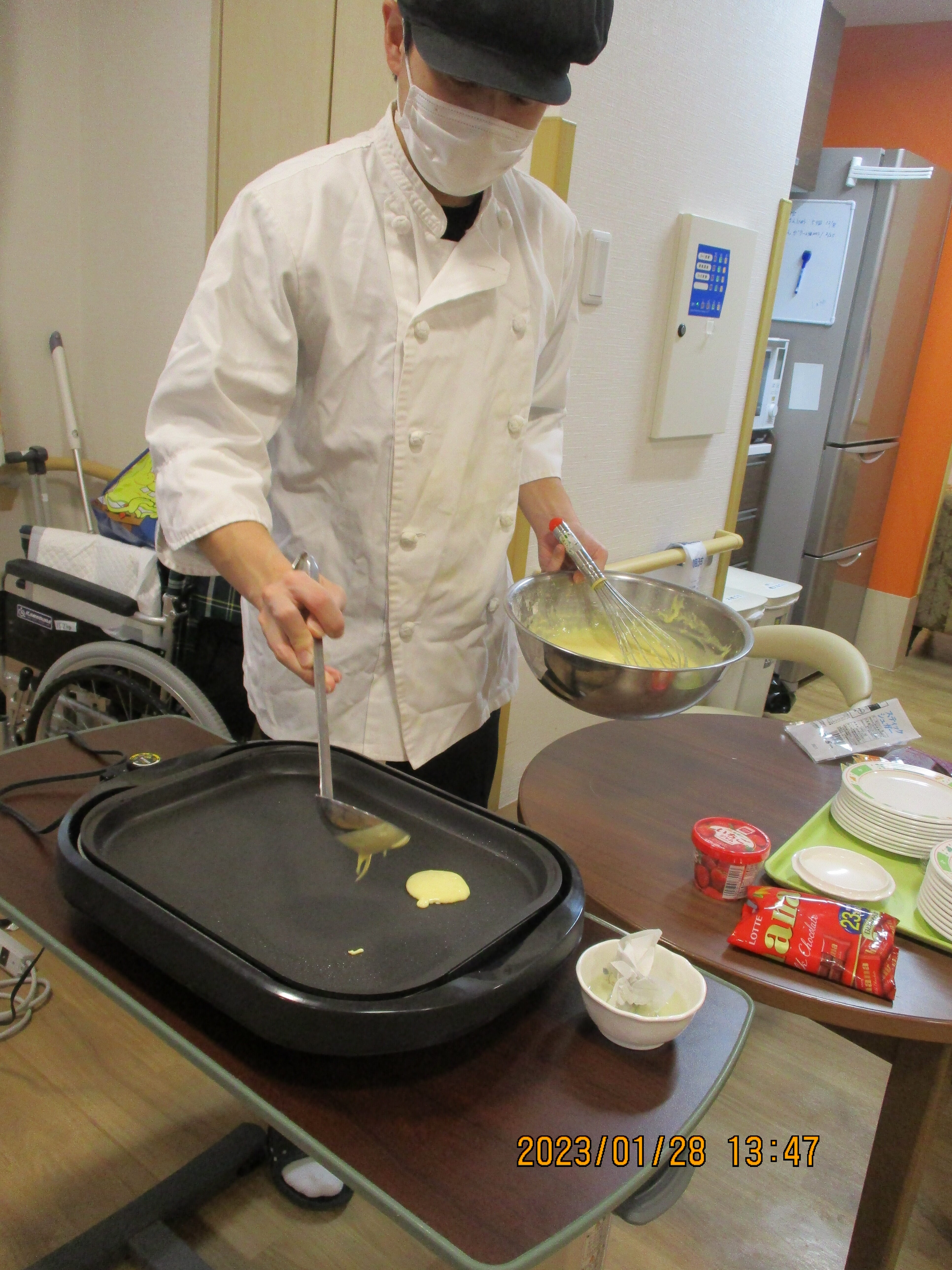 食事レクリエーションにてホットケーキを焼きました。
