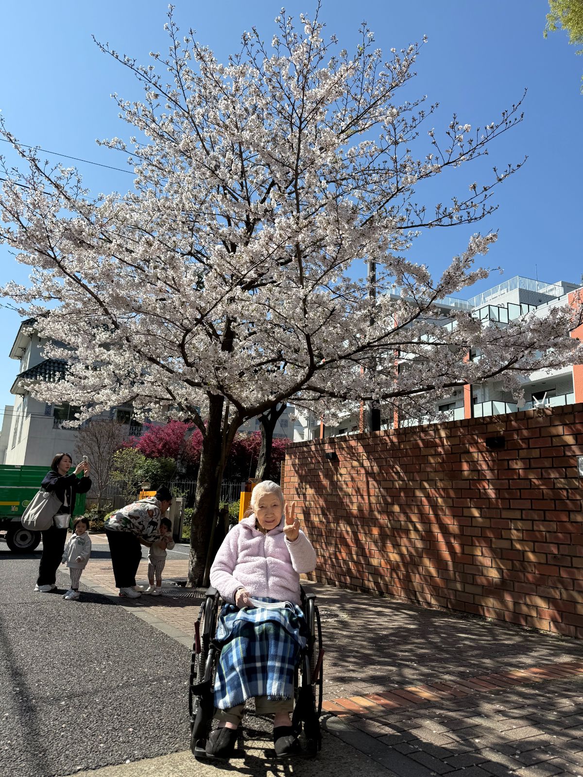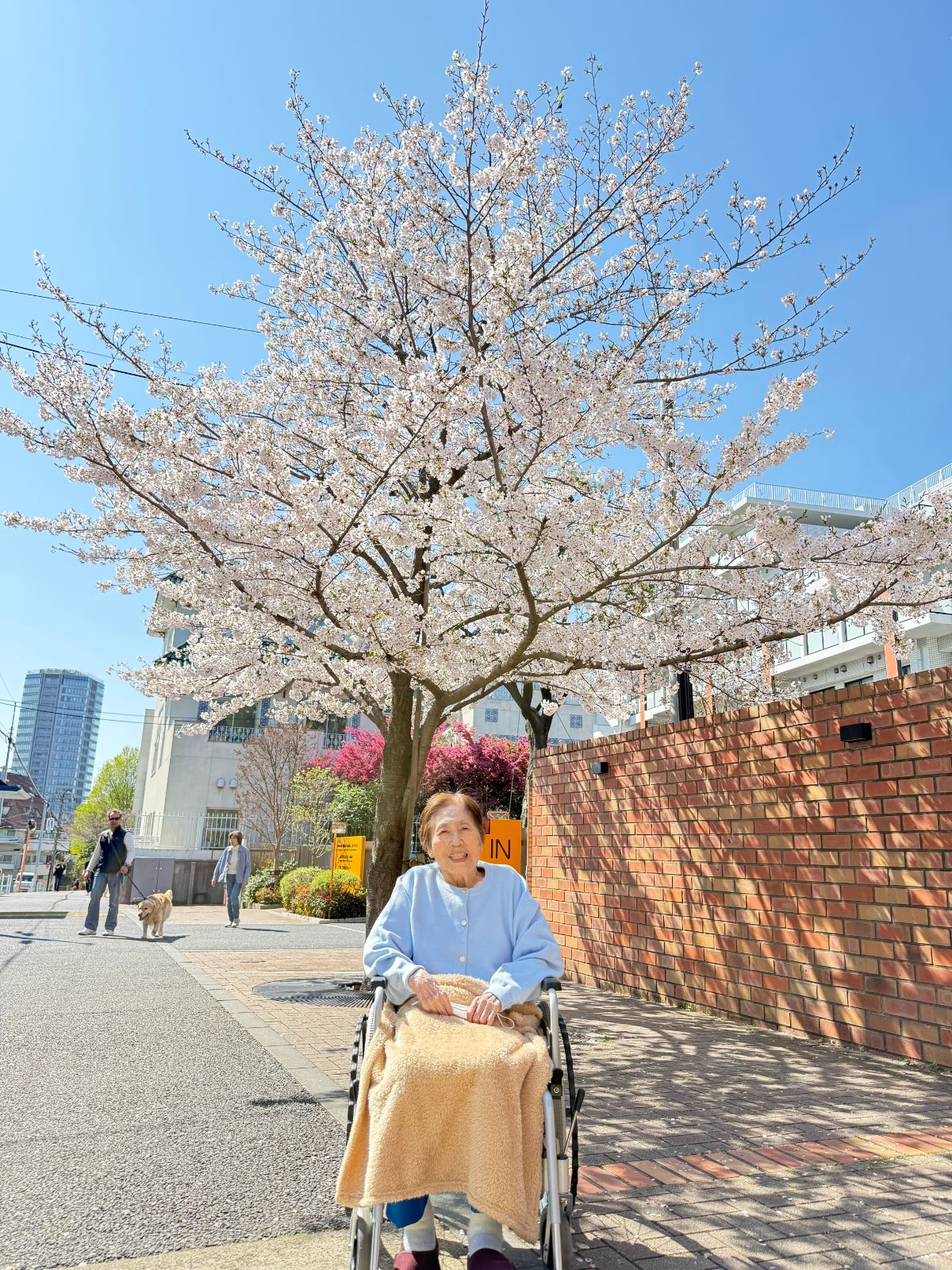今年は3月30日には満開となり有栖川公園からシニアガーデンアリスにかけて美しい桜が道を飾りました。快晴の空の下、散っていく花びらを名残惜しそうに利用者様は見続けておられました。また来年も一緒に見れますように。