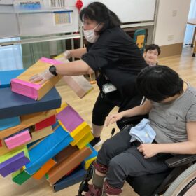 皆さんが持っているうちわは、普段の活動中にご自分で作っていただいたものになります( *´艸`)
