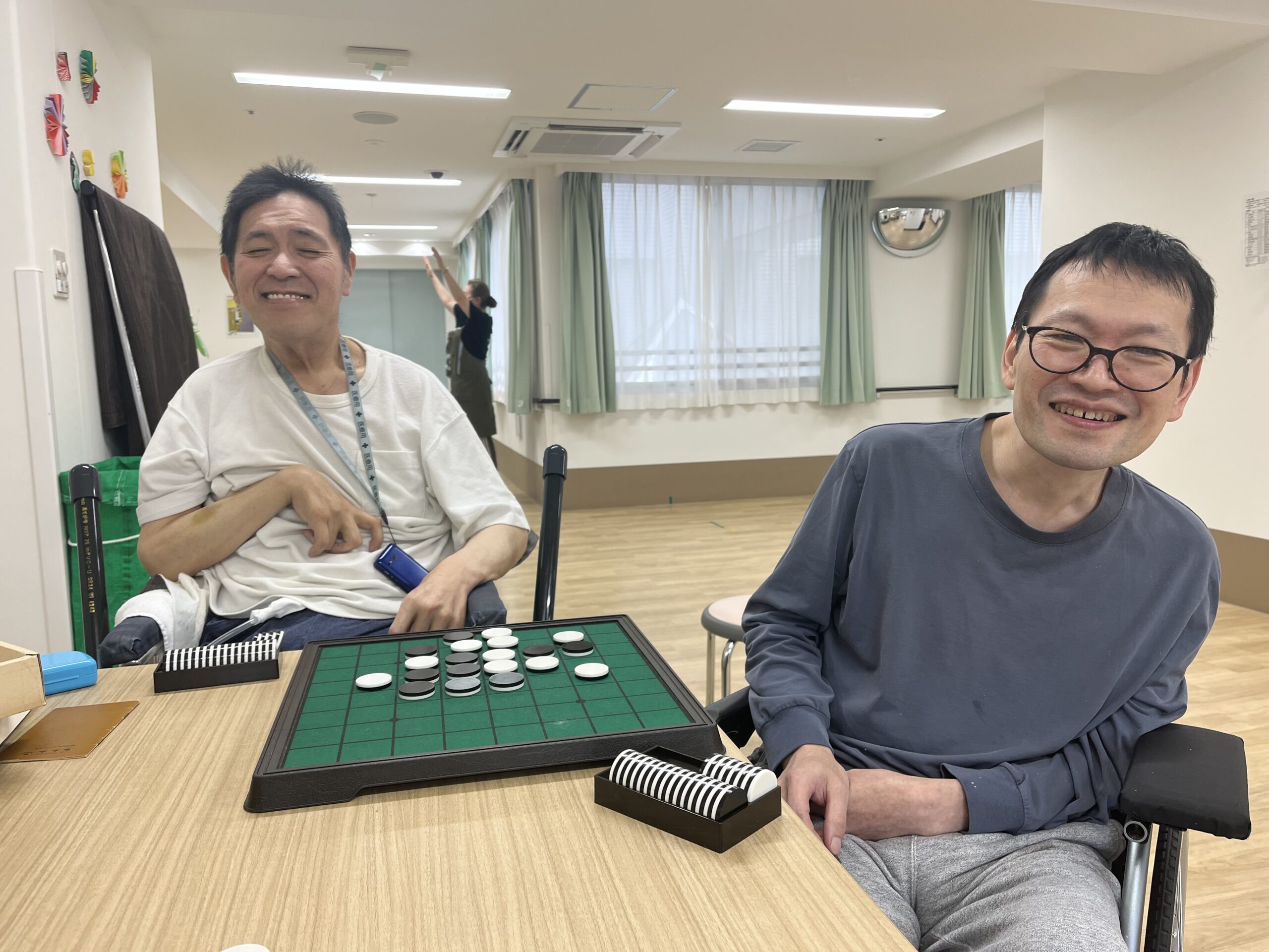 本日は、日中活動の時間に、ご利用者様同士による真剣なオセロ対決が繰り広げられました🟡⚫