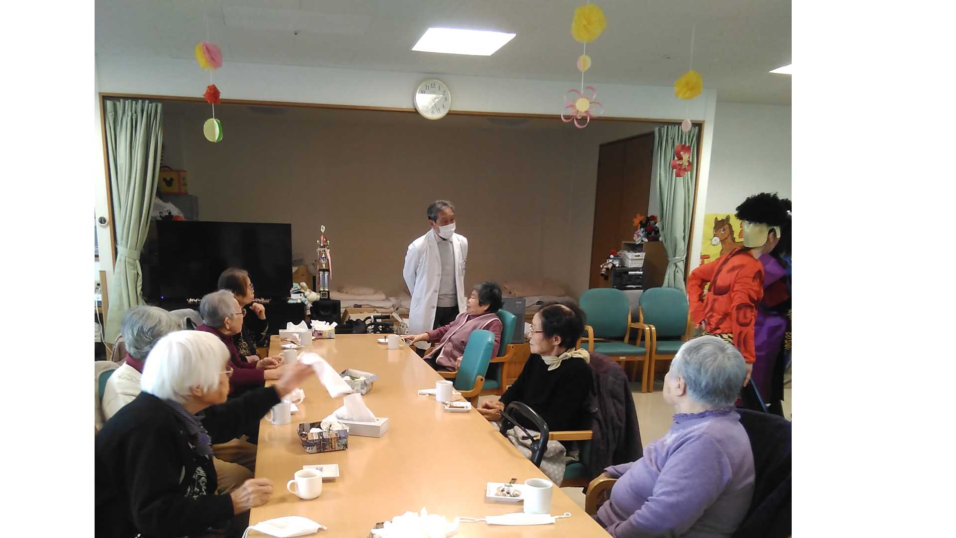 皆さん、どこに、たい焼き屋さんがいるかも分からず職員に連れられるまま外に出て来てビックリ‼「お金持って来たっけ?」「頼んでねえど?」「あら~スゴイ‼」と反応は様々でしたが、自分で頼んだ分を買った後は・・・見ての通りのニコニコ顔(^^)でした。