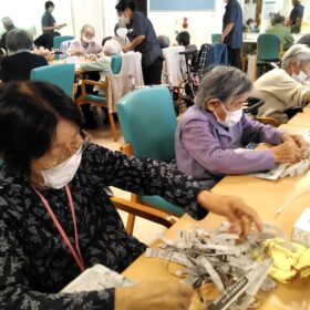 やっぱり恒例のゲームからのようです(笑)紙コップやうちわ、お手玉も準備されてますね~💦