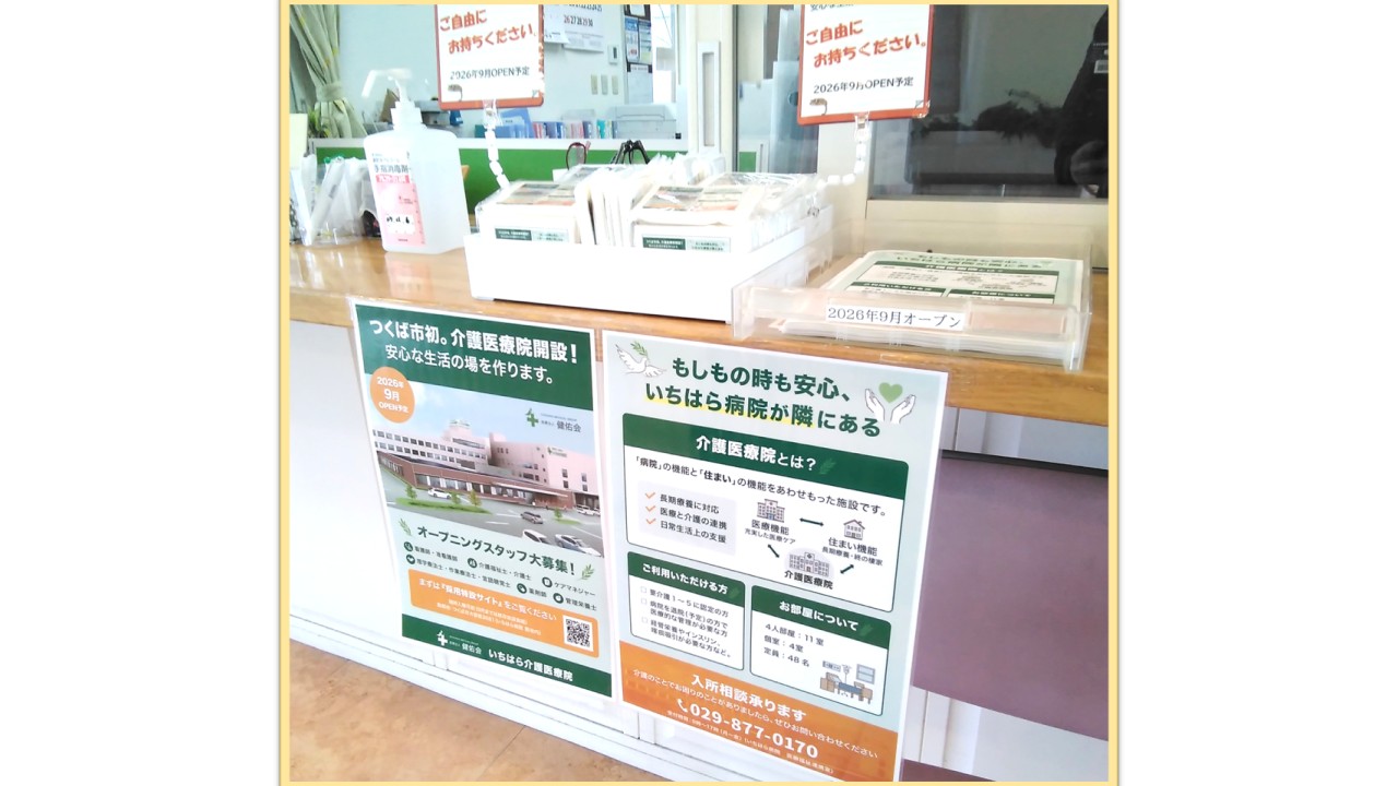 アネックスの、玄関を入ってすぐにある受付窓口にも「介護医療院」のお知らせを掲示しましたよ~(^O^)/