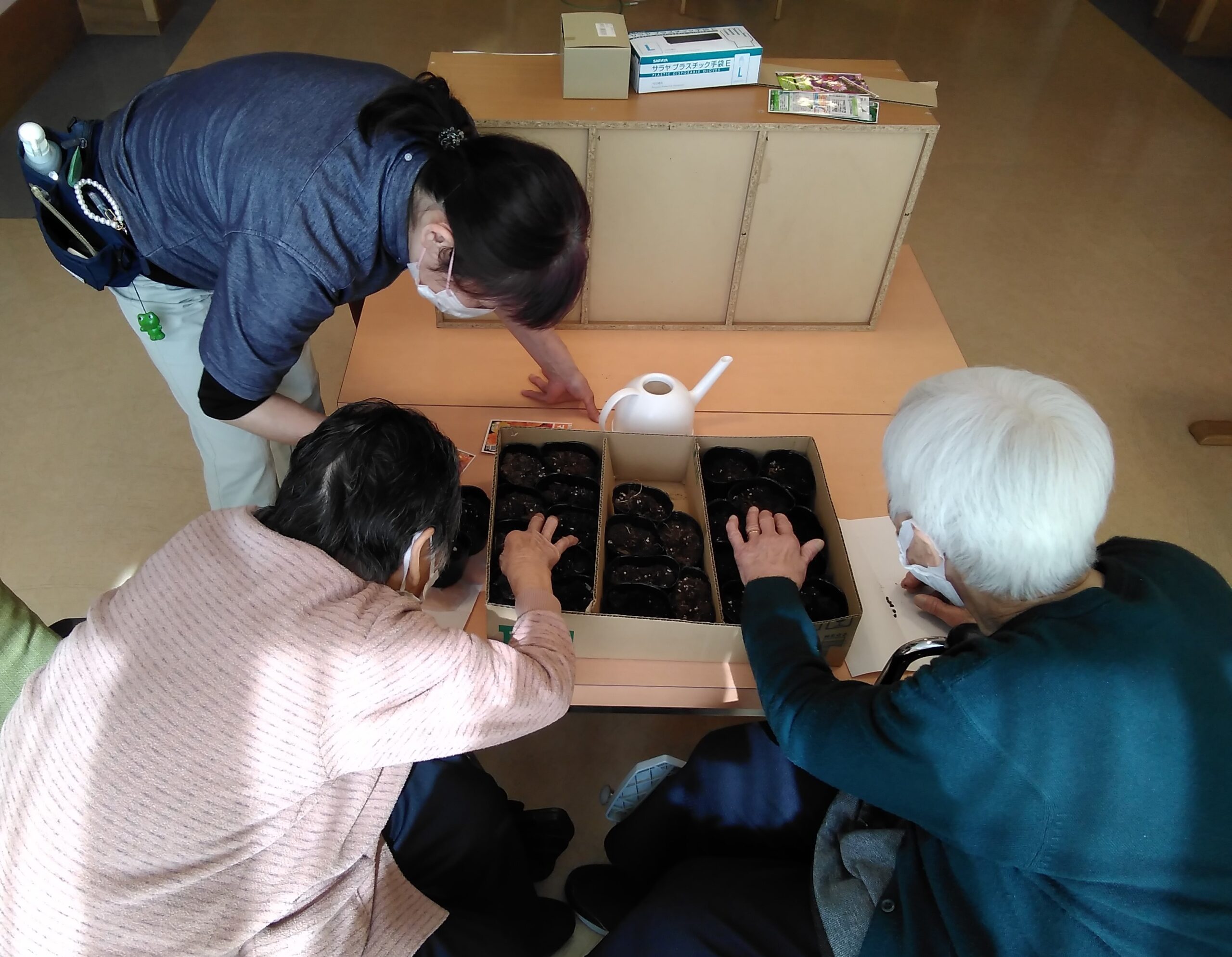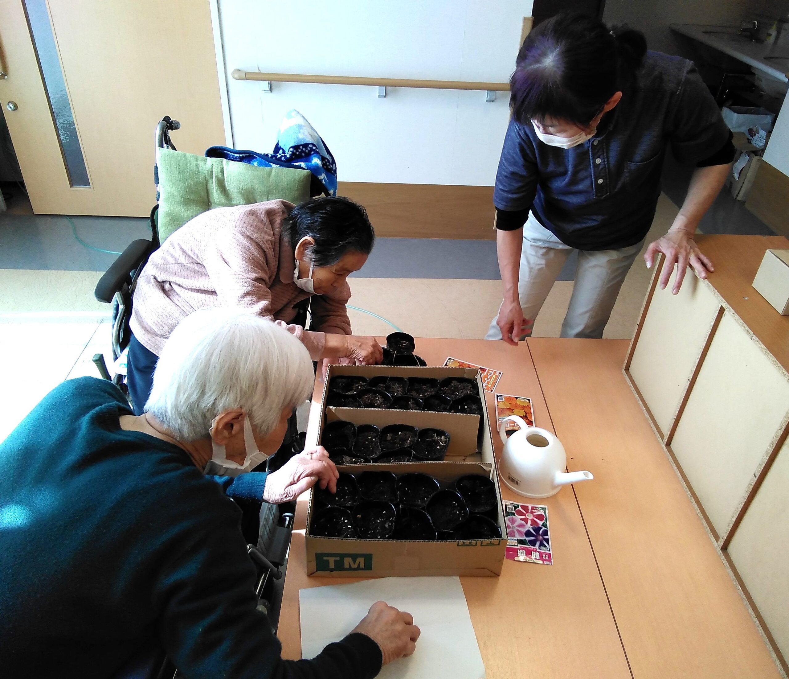 利用者の皆さんにも協力してもらいながら、アネフェスには元気な苗を、皆さんにお届けしたいと準備しております♬