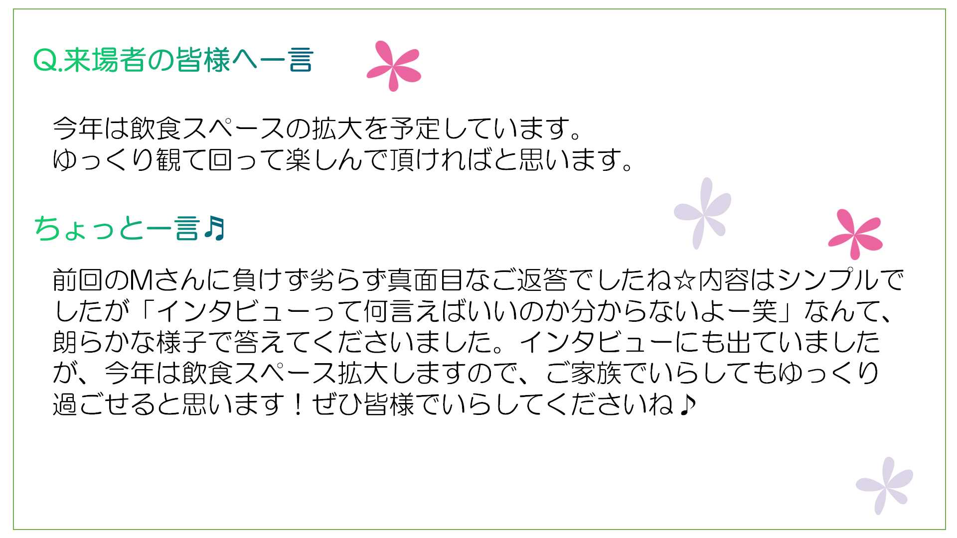 前回の更新から時間が経ってしまっていますが(;^ω^)💦(笑)次々と職員インタビュー更新していきますから最後まで楽しみにご覧くださいね~(^O^)/