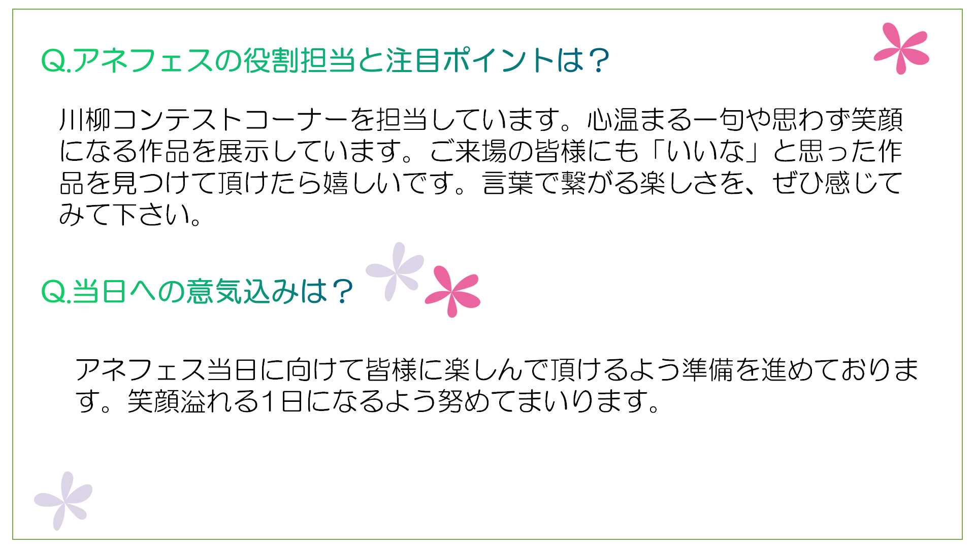 このブログでも、何度かお知らせしてますが、まだまだ公開できていない川柳もありますので、是非、アネフェスでは、川柳コーナーに足を運んで見てみてくださいね~(*’▽’)