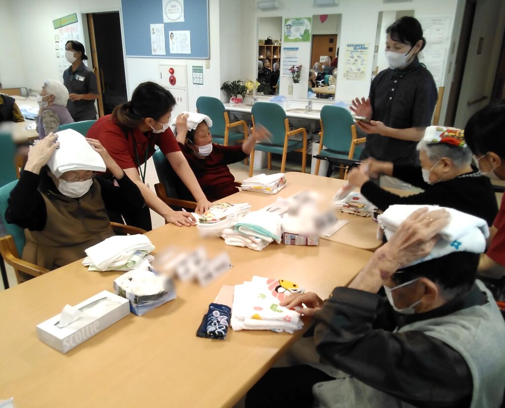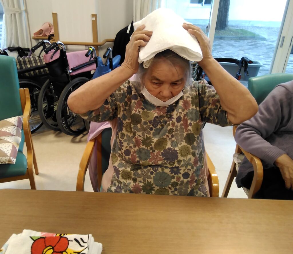 そんなこんなで先月のチャレンジゲーム週間では、皆さん湯上がりのように頭にタオルをのせながら、賑やかな午後のレクリエーション時間でした~(*^^*)