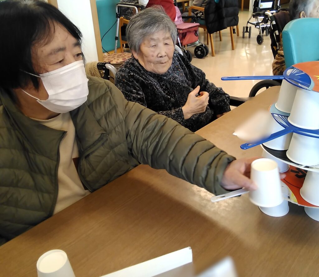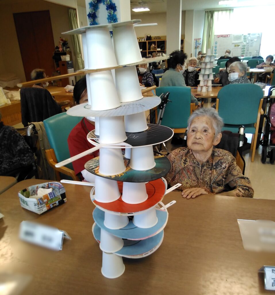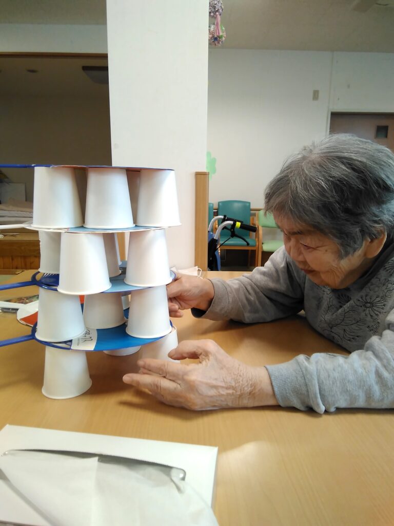 下の段の紙コップを抜き取り、上に積み重ねていくだけの単純なゲームですが、、、いつの間にか夢中になってしまいます💦(笑)