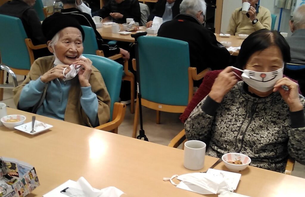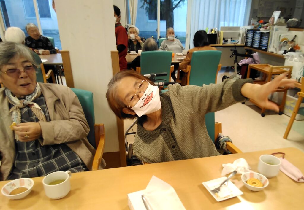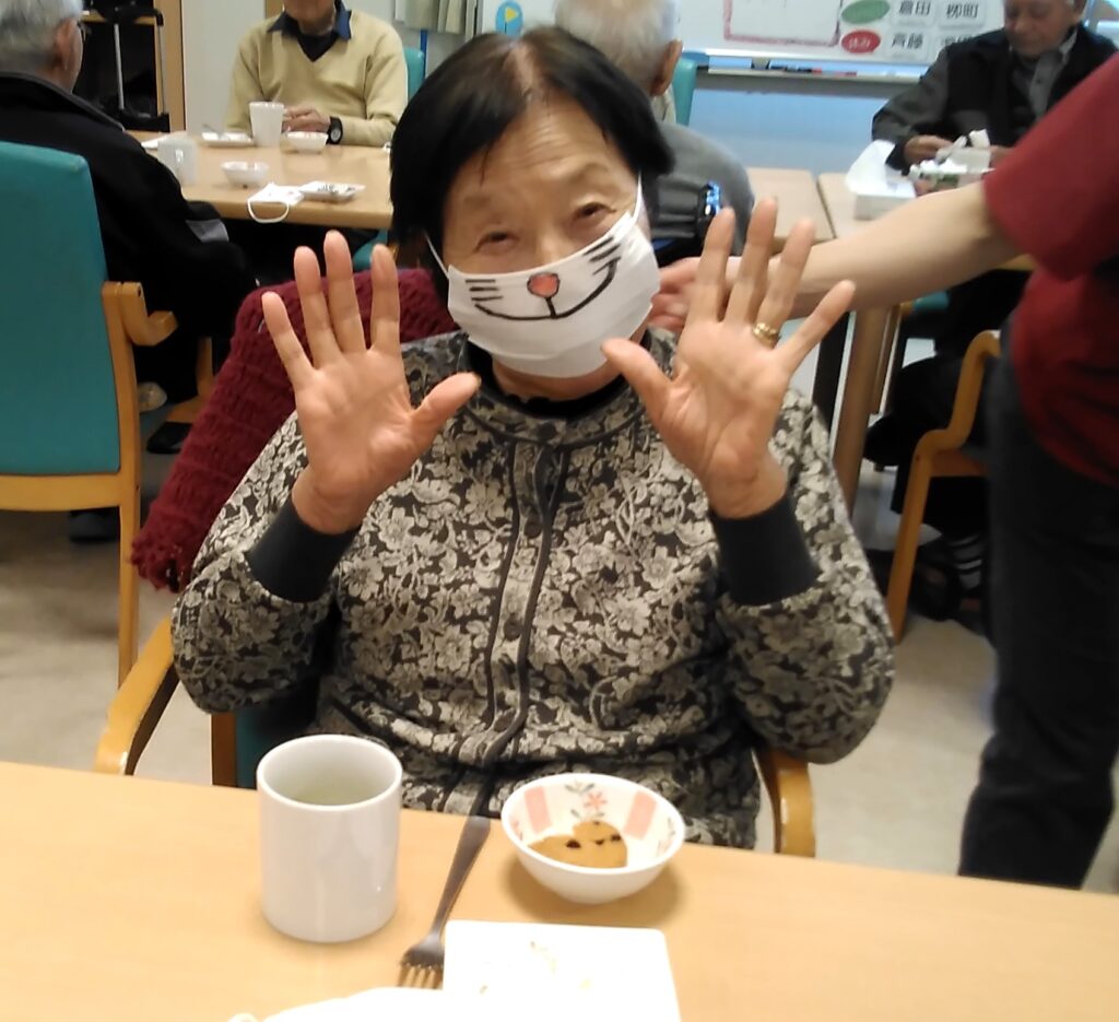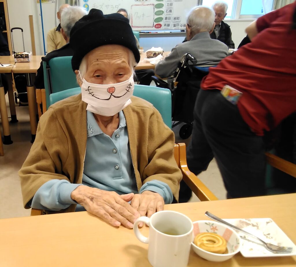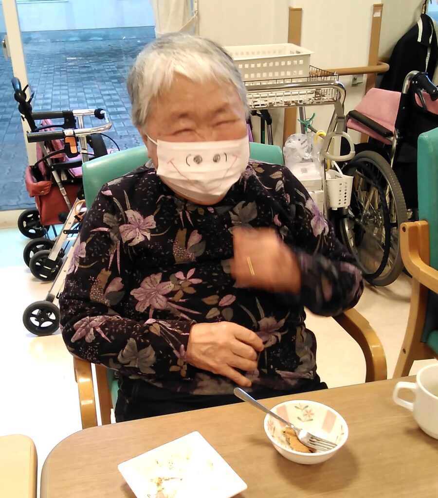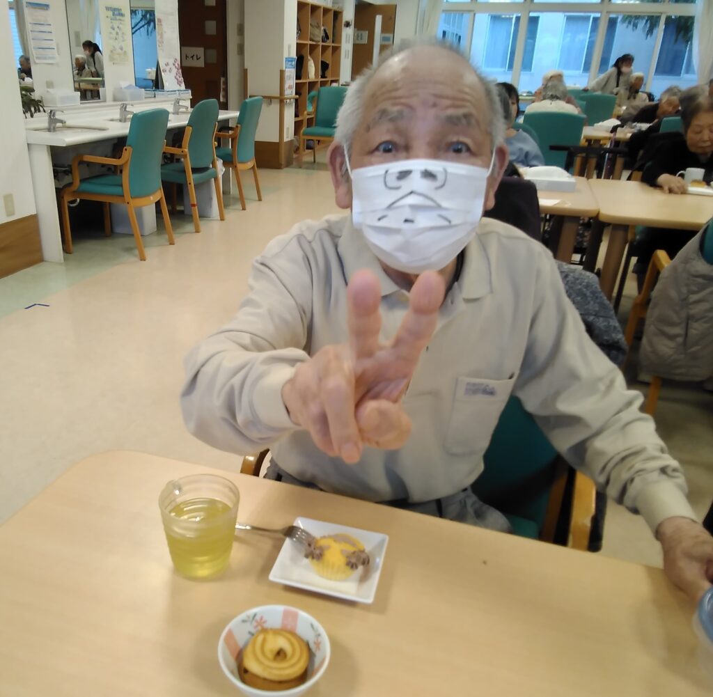 自分のマスクも面白いけど皆の顔を見て思わず笑っちゃう(笑)賑やかなおやつタイム♪