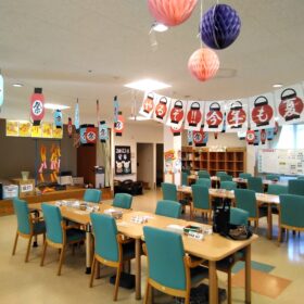 今度は、うちわを手に「職員に愛を届けましょう♪」ゲームで(笑)皆さんうちわにハート💛を乗せてリレーです!(^^)!