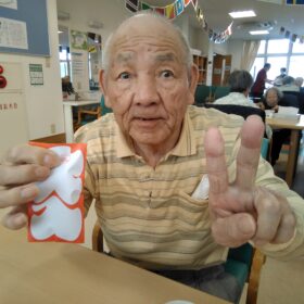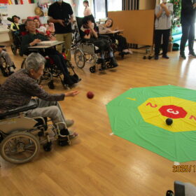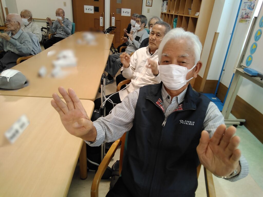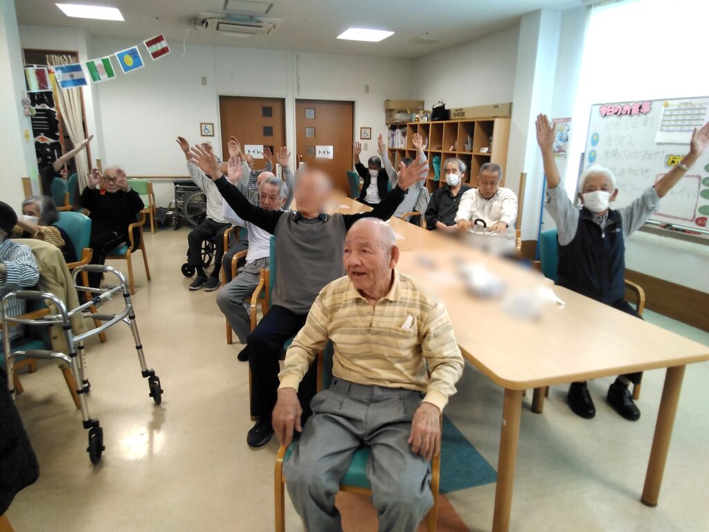 午前中も小集団でリハビリ時間がありますが、午後のレクリエーションでも週に1回程度、リハビリ職員による集団でのリハビリ体操があります!(^^)!