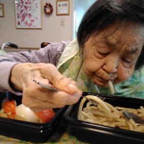 今年の七夕は、竹に見立てた筒にボールを転がし、目の前を転がるボールをスプーンで1人1つずつ、すくい、どのチームが早かったかテーブル対抗でゲームしました♪スプーンでボールをすくうのは簡単そうでとても難しいですね・・・