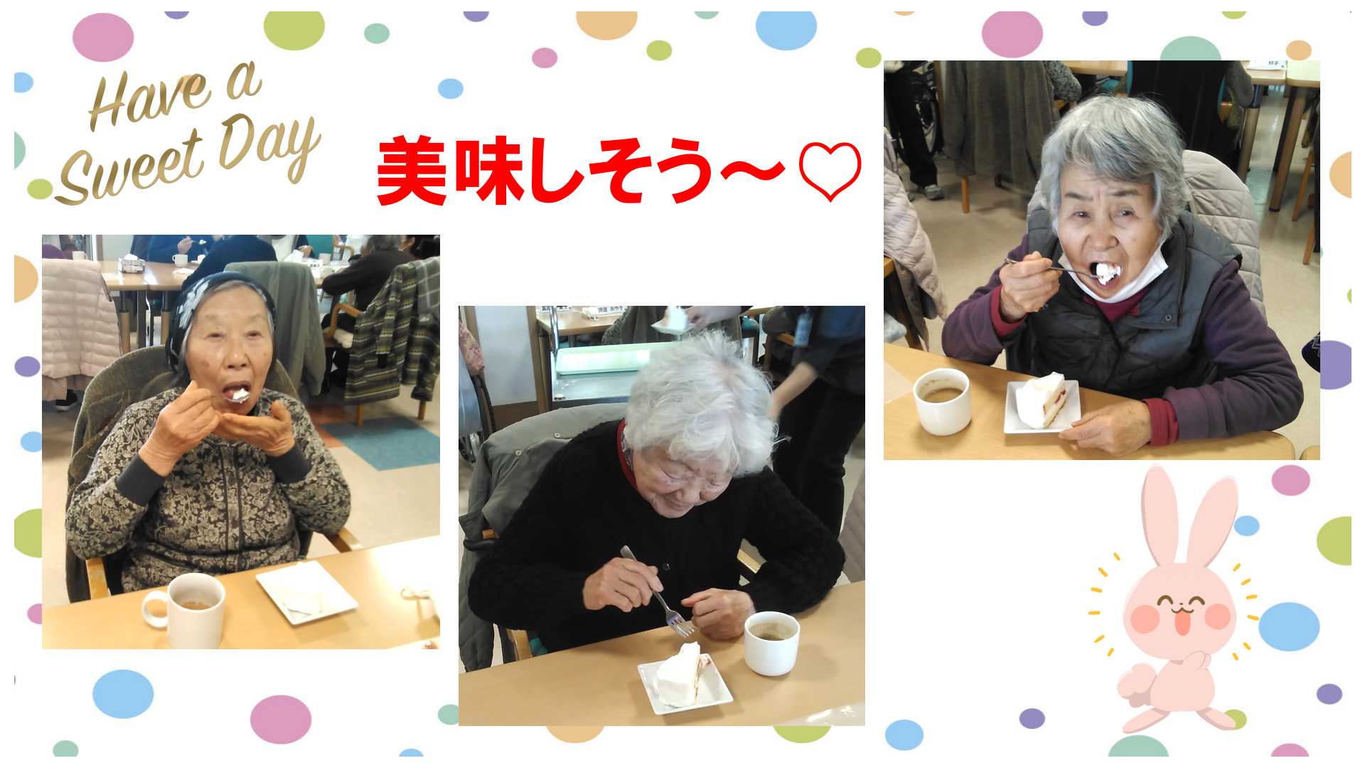 そうなんです‼アネックスでは、たま~に、「季節のデザート」としておやつにケーキ🍰が出るんですよ~(^O^)/