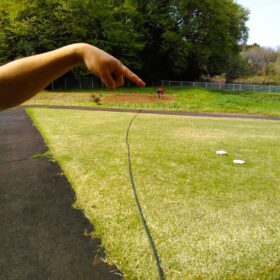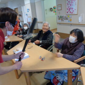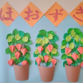 今回は職員が折り紙で作った朝顔のパーツの貼り付け