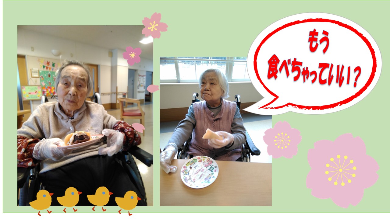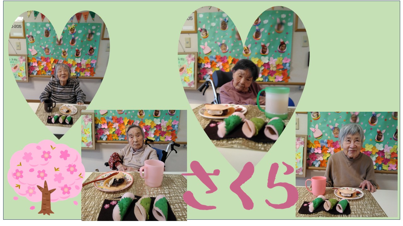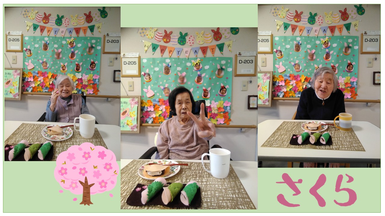 職員が作った食べられない(フェルト製)の桜もちとも一緒に記念撮影~(/・ω・)/