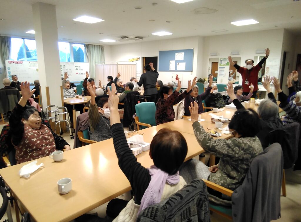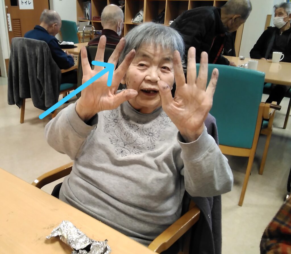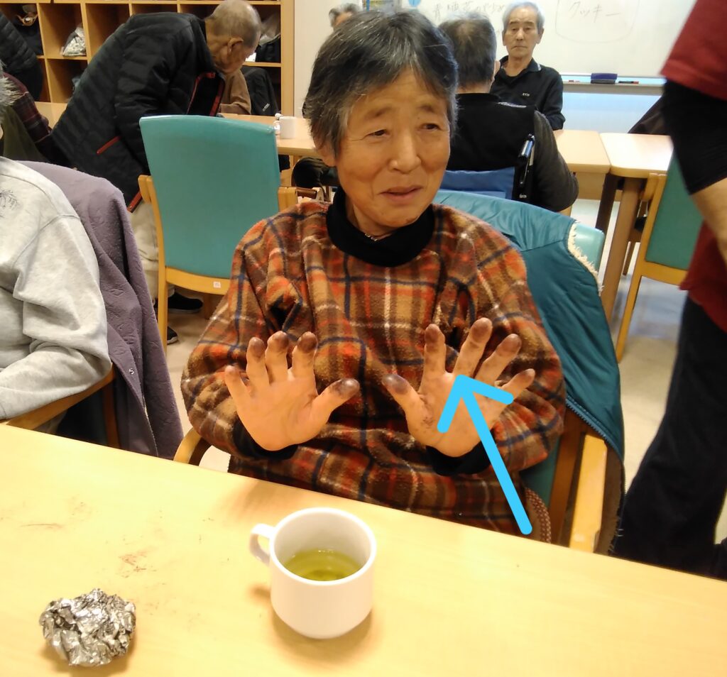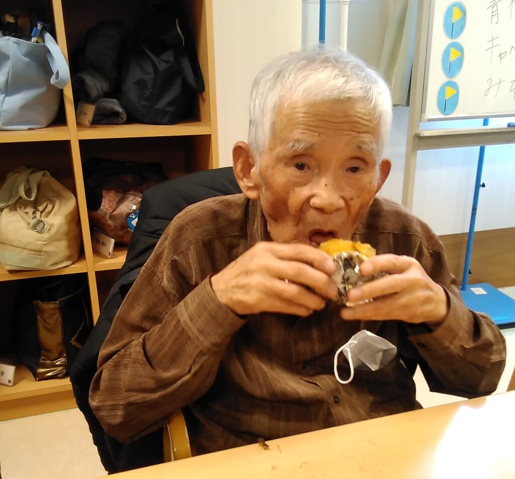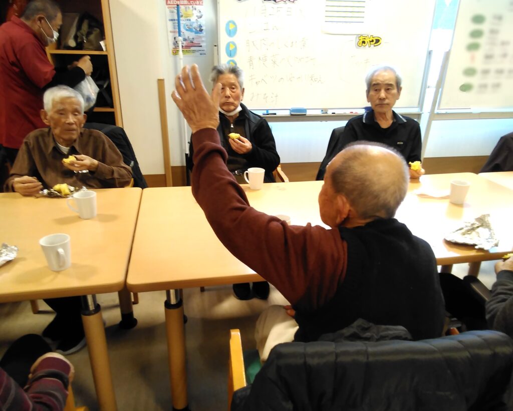 どうしたのかと言うと「皆さん焼き芋は美味しかったですかー?楽しかったですかー?」の職員の問いに「は~い✋」と皆さん、こんなに元気よく応えてくれたのでした~(^O^)/