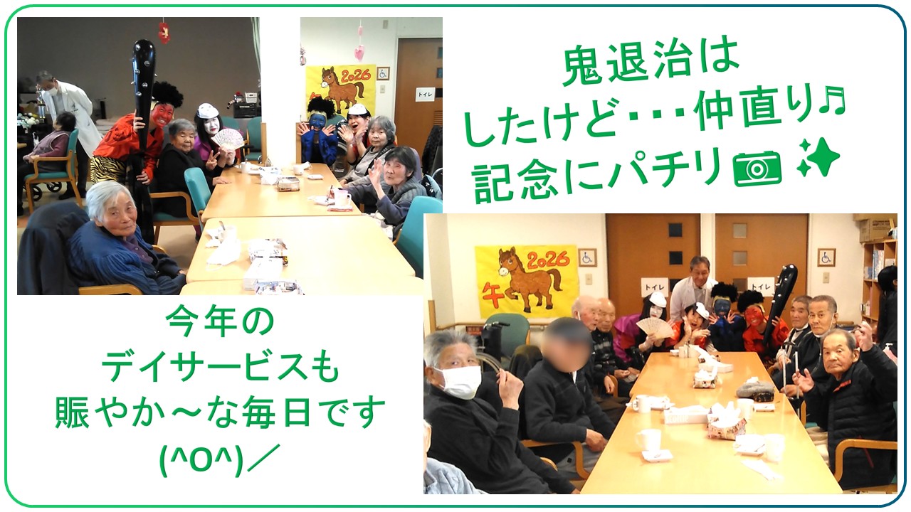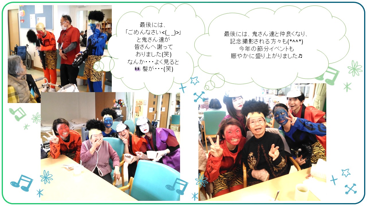 節分イベントの最後には(笑)鬼さん達から「ごめんなさい<(_ _)>」と皆さんへ♪