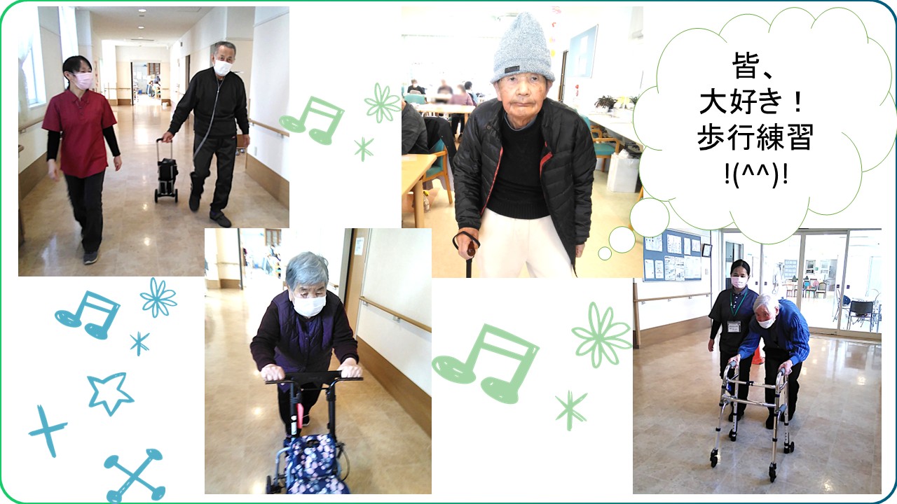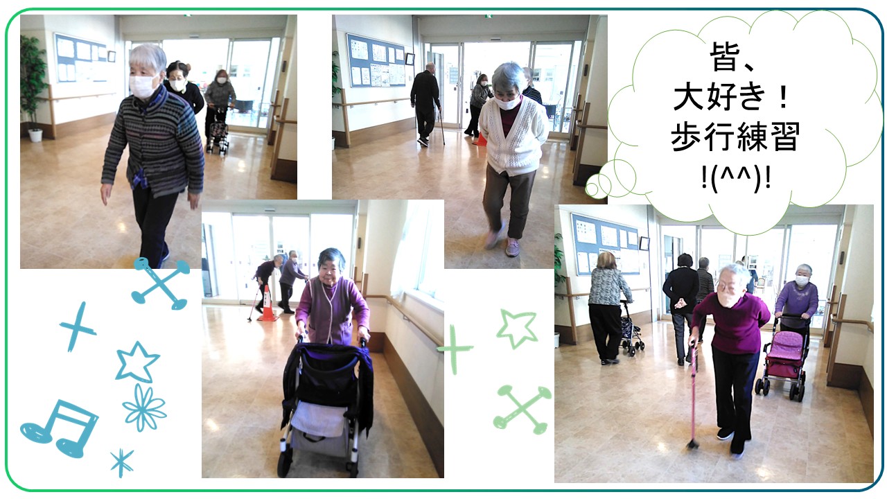 歩行練習が終わり、皆さんが席に落ち着いたところに・・・