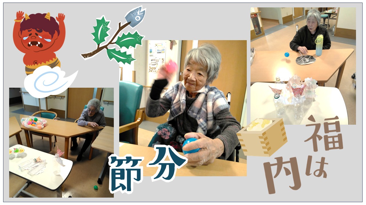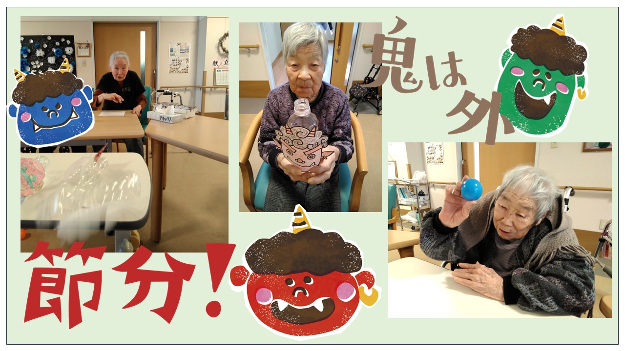 ペットボトルに鬼が貼ってあるんですが、ご利用者に塗っていただきました~(*’▽’)