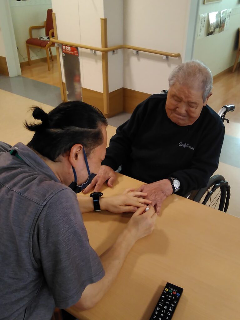 この日は女性利用者様が職員にマニュキュアを塗ってもらってるのを見かけて