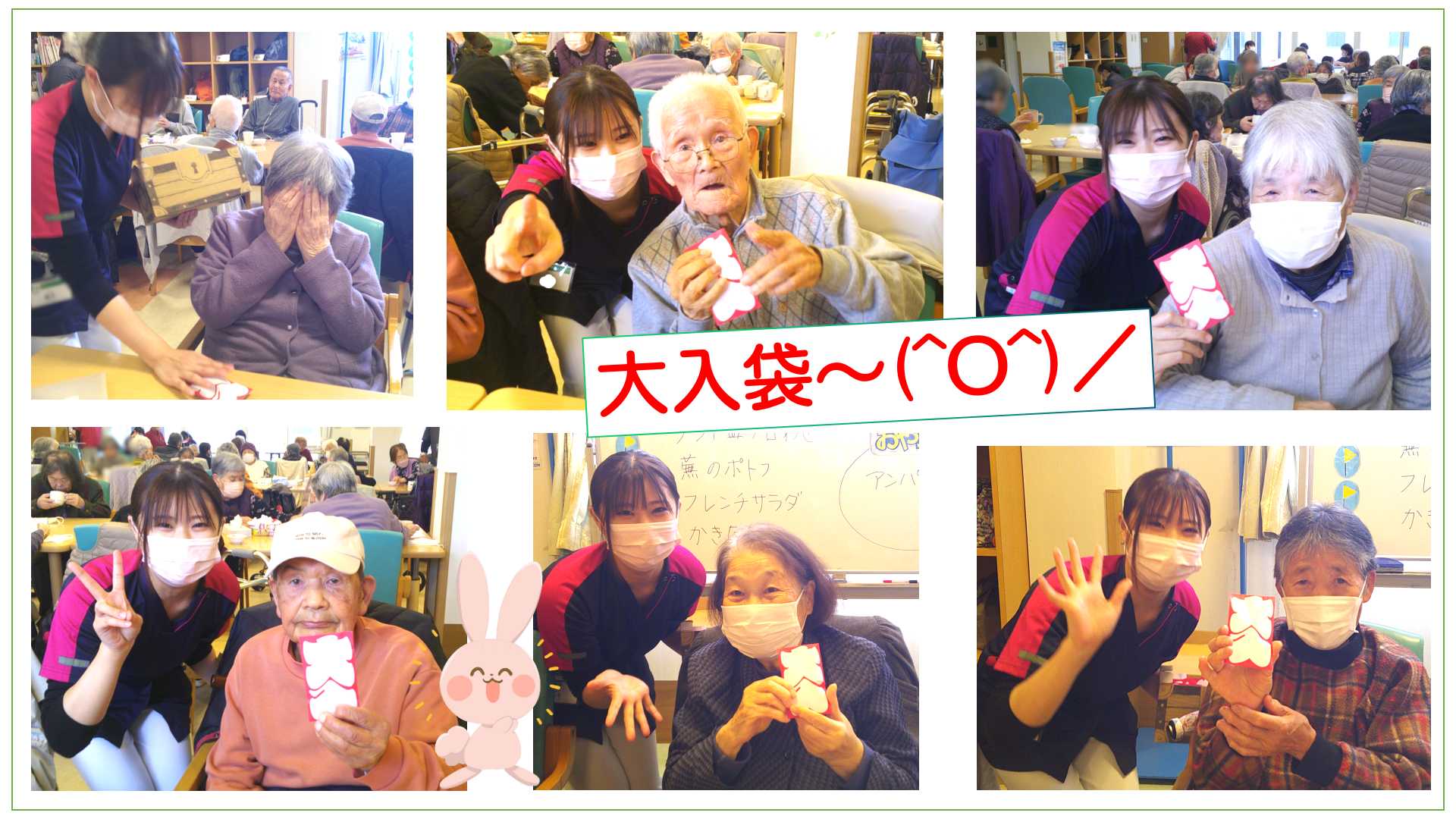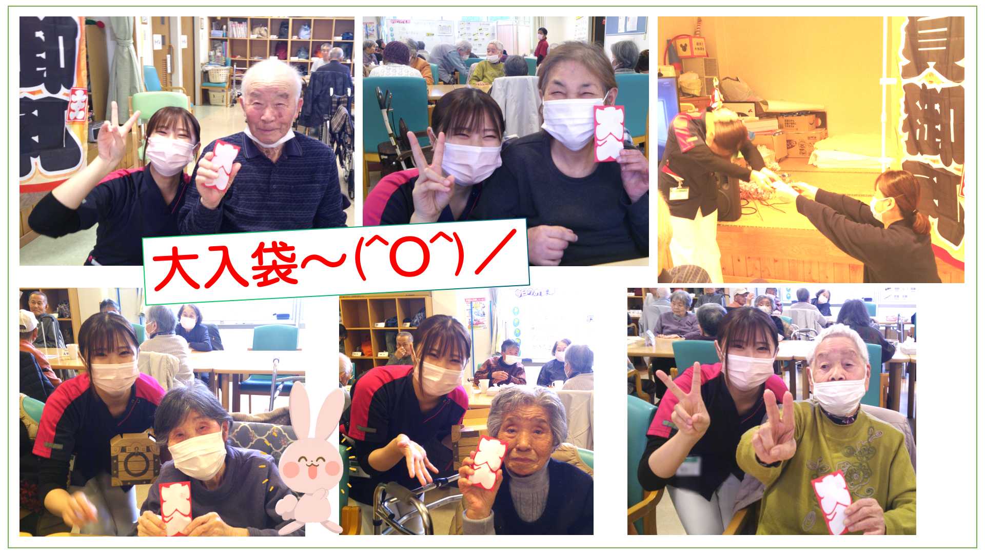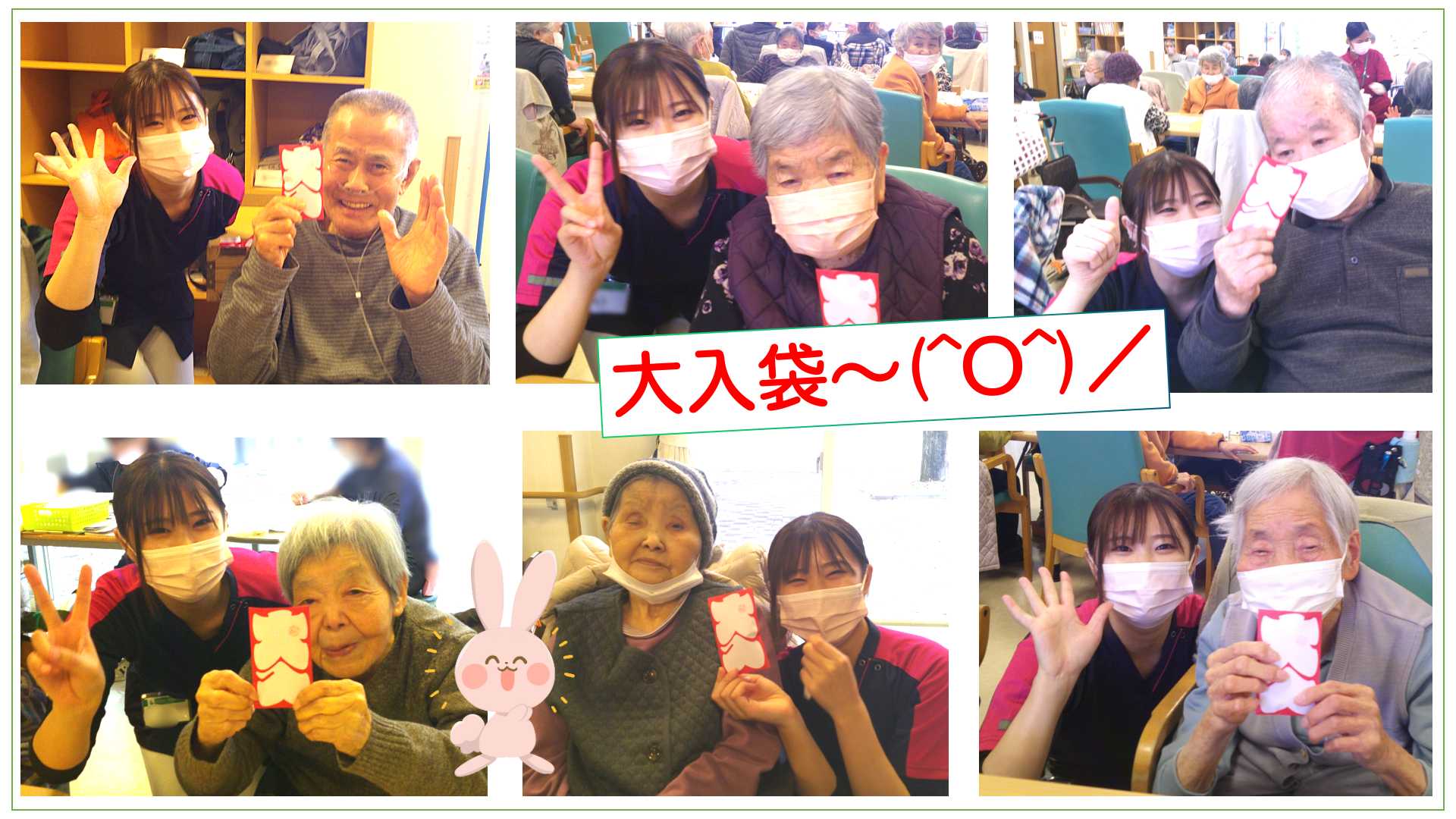 この日の大入り袋は、新しくデイサービスの看護師として入職された職員から🎵ご挨拶がてら皆さんへ手渡してもらいました(≧▽≦)