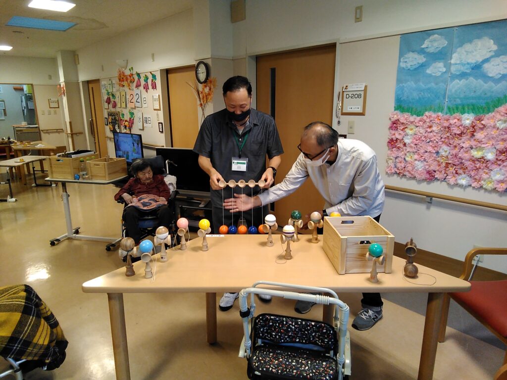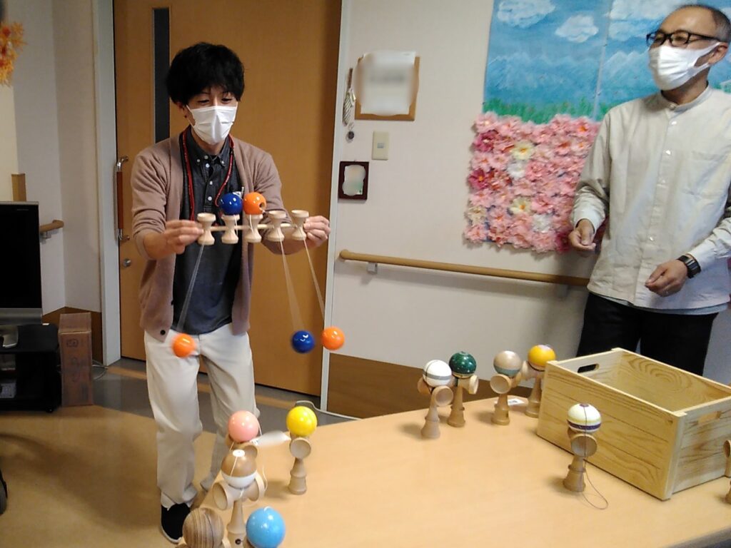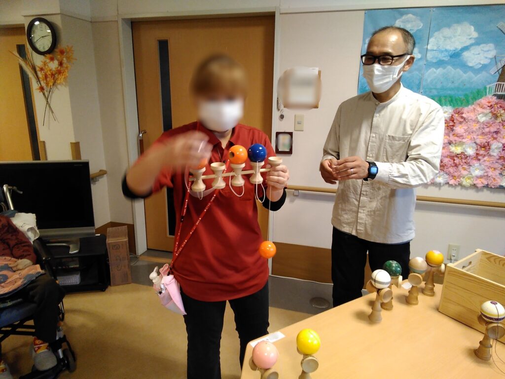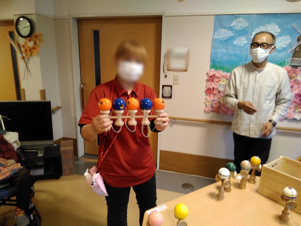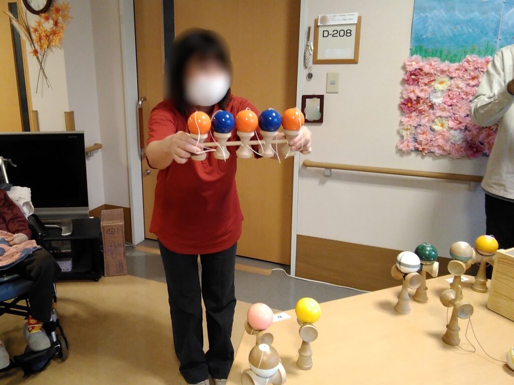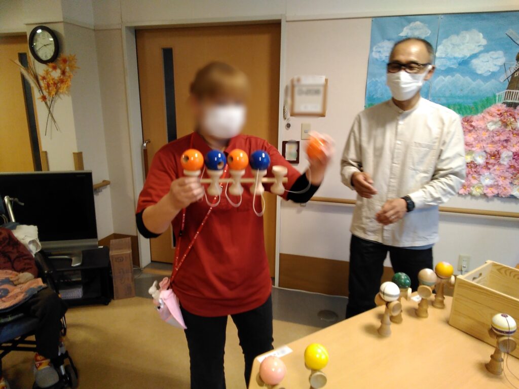 利用者様を差し置いて職員が5連けん玉に夢中に!!